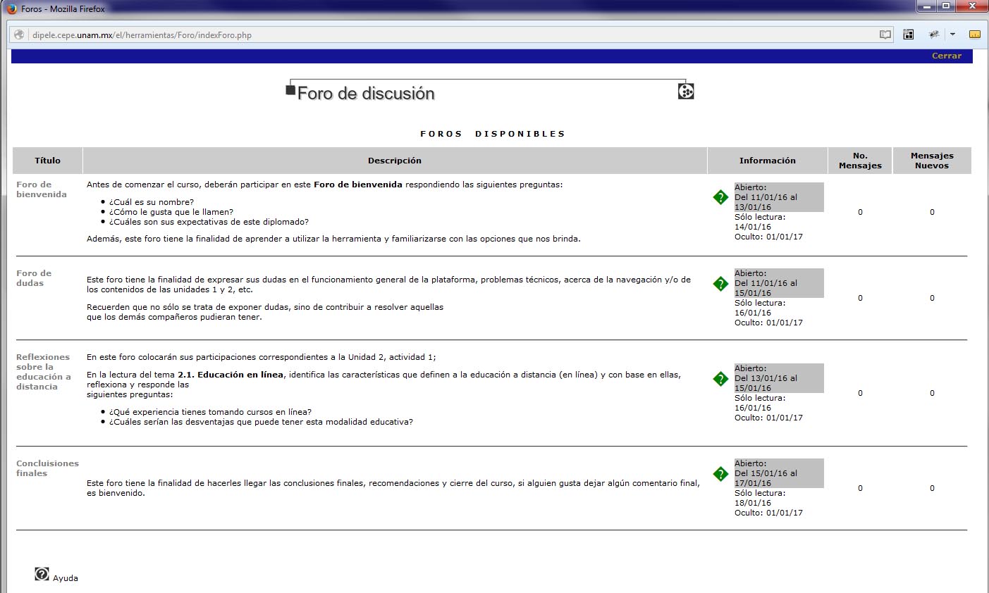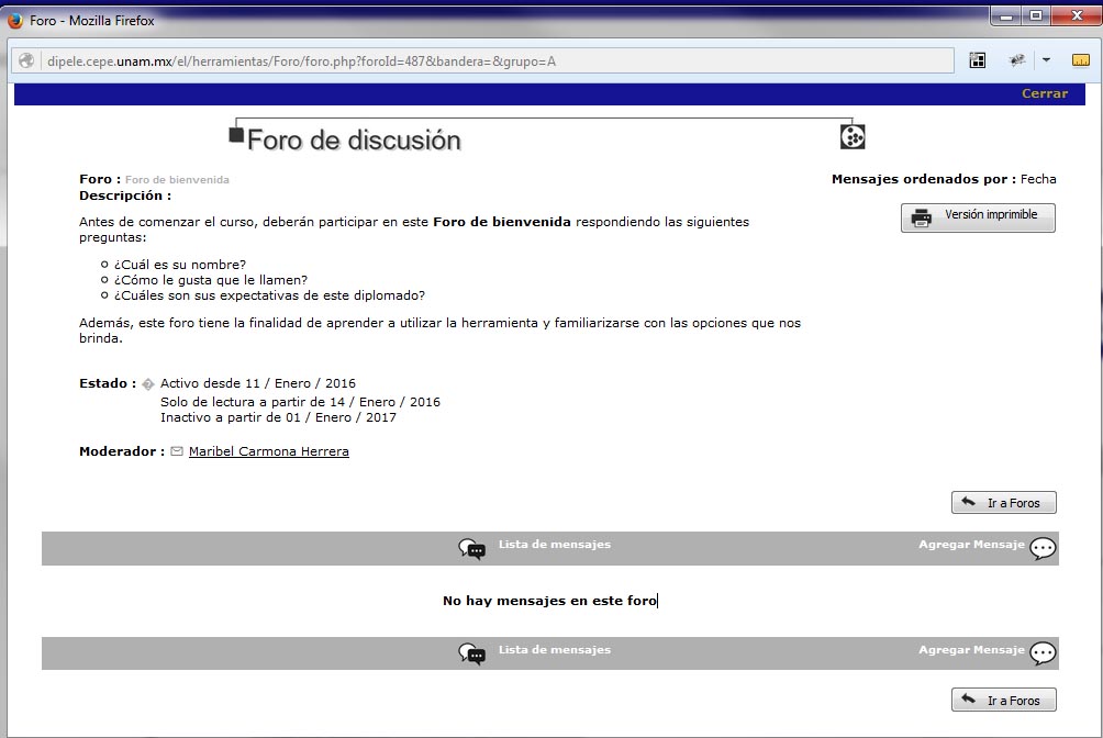El botón Ir a foros te regresará al listado de Foros citado anteriormente.