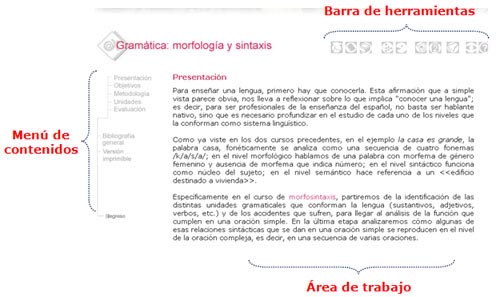 Al seleccionar la asignatura que vas a trabajar, se despliega la página de presentación.