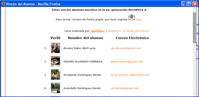 Se desplega una lista de tus compañeros de generación para que puedas comicarte