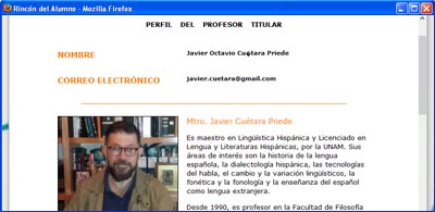 Al dar clic en esta liga se muestra una breve reseña curricular del docente a cargo de la materia.