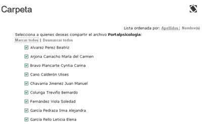 Aparecerá una pantalla con el mensaje: El archivo (nombre) va a ser compartido para: y la lista de los alumnos del diplomado.