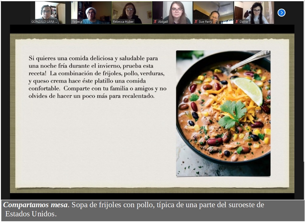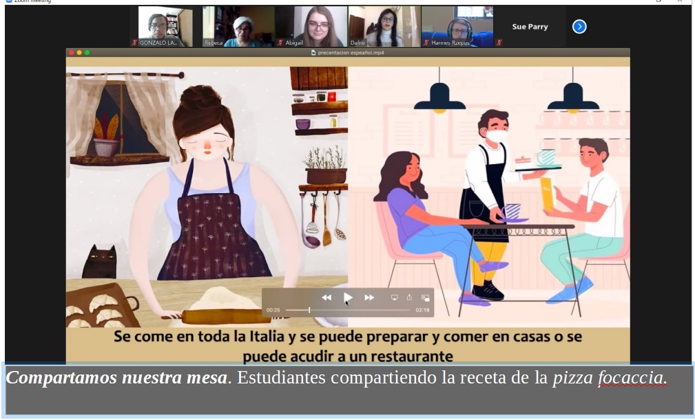 conversación, ejercicios con videos, audios, imágenes y juegos.